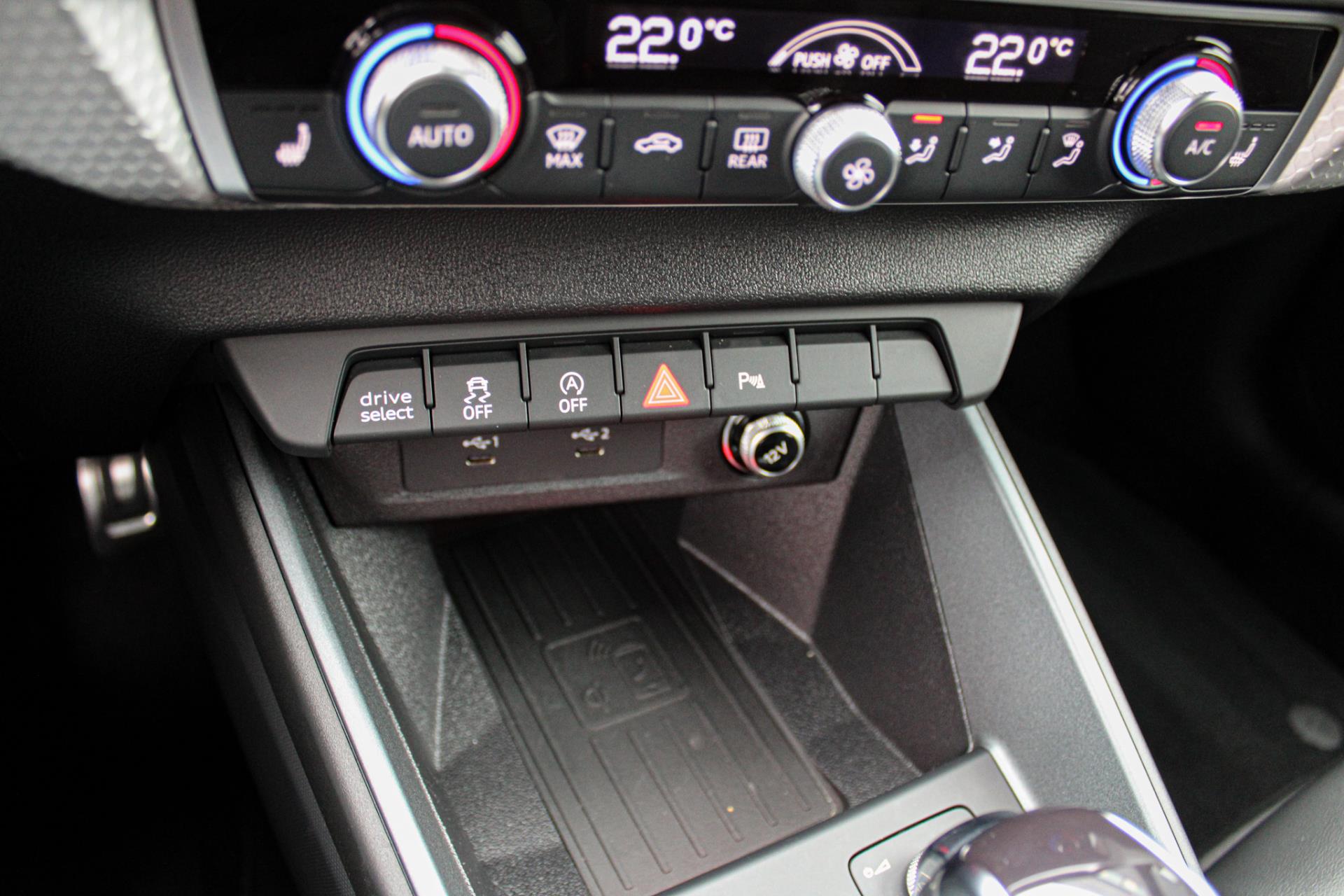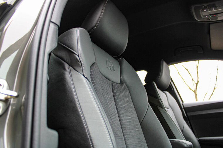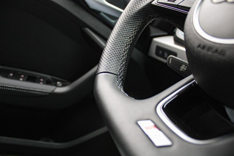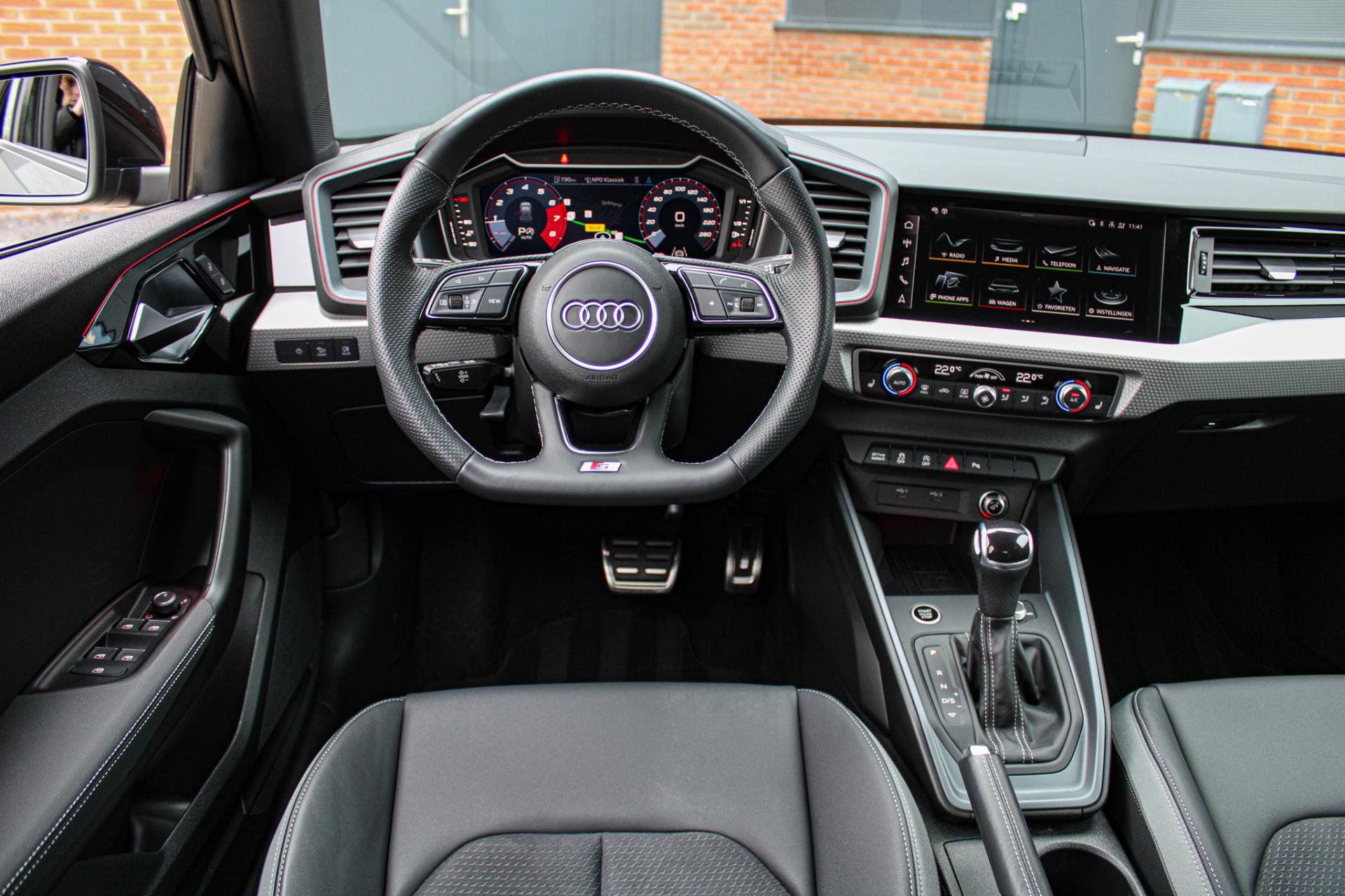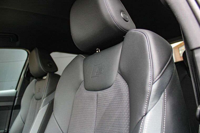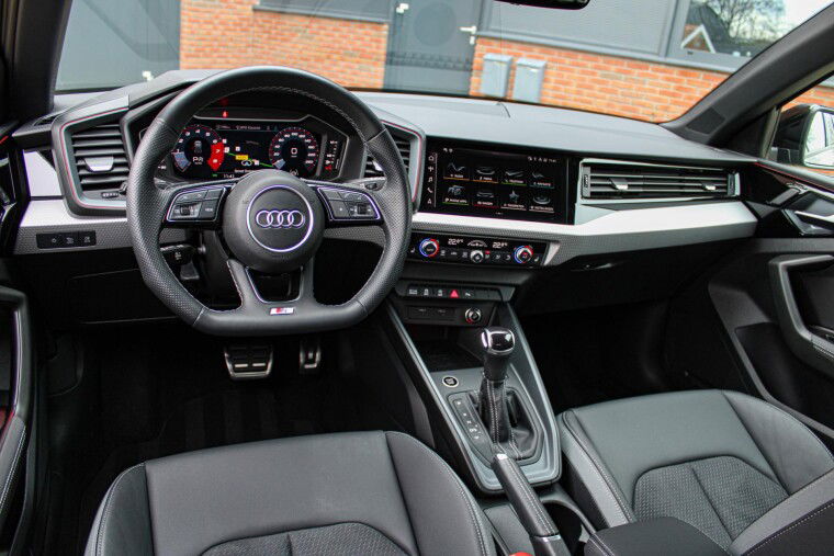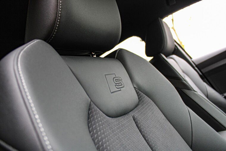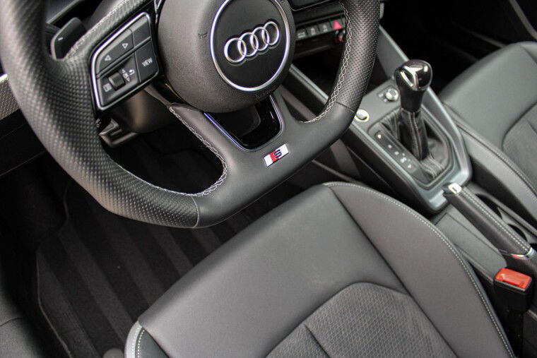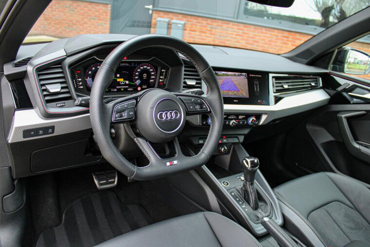 Het interieur is volledig S line: alcantara/leder sportstoelen met stoelverwarming, afgevlakt S line sportstuur met schakelpaddles, Audi Virtual Cockpit en 30-kleurige ambianceverlichting. Verder voorzien van achteruitrijcamera, Audi Smartphone Interface (Apple CarPlay), Keyless Entry & Start en elektrisch inklapbare spiegels.