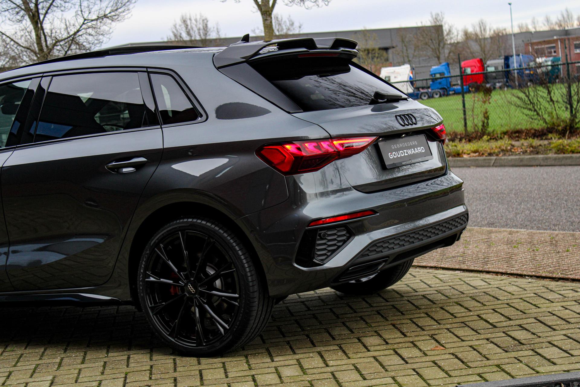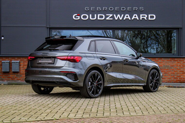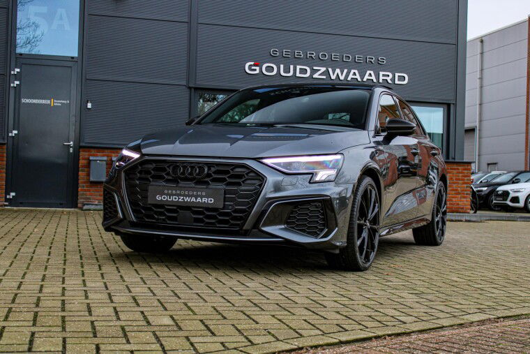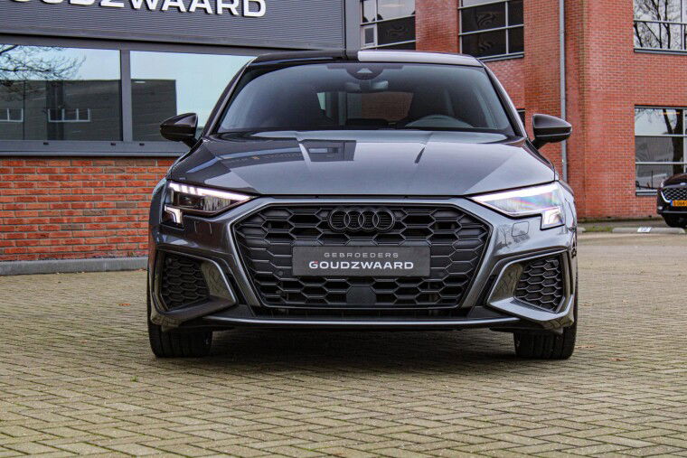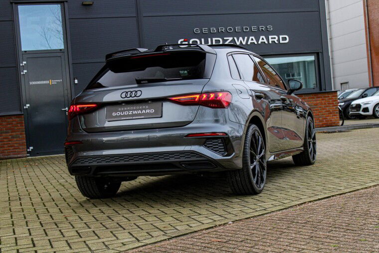 Nieuw binnen! Unieke 2022 Audi A3 Sportback S-line 245PK in daytonagrijs metallic met zwart optiek.