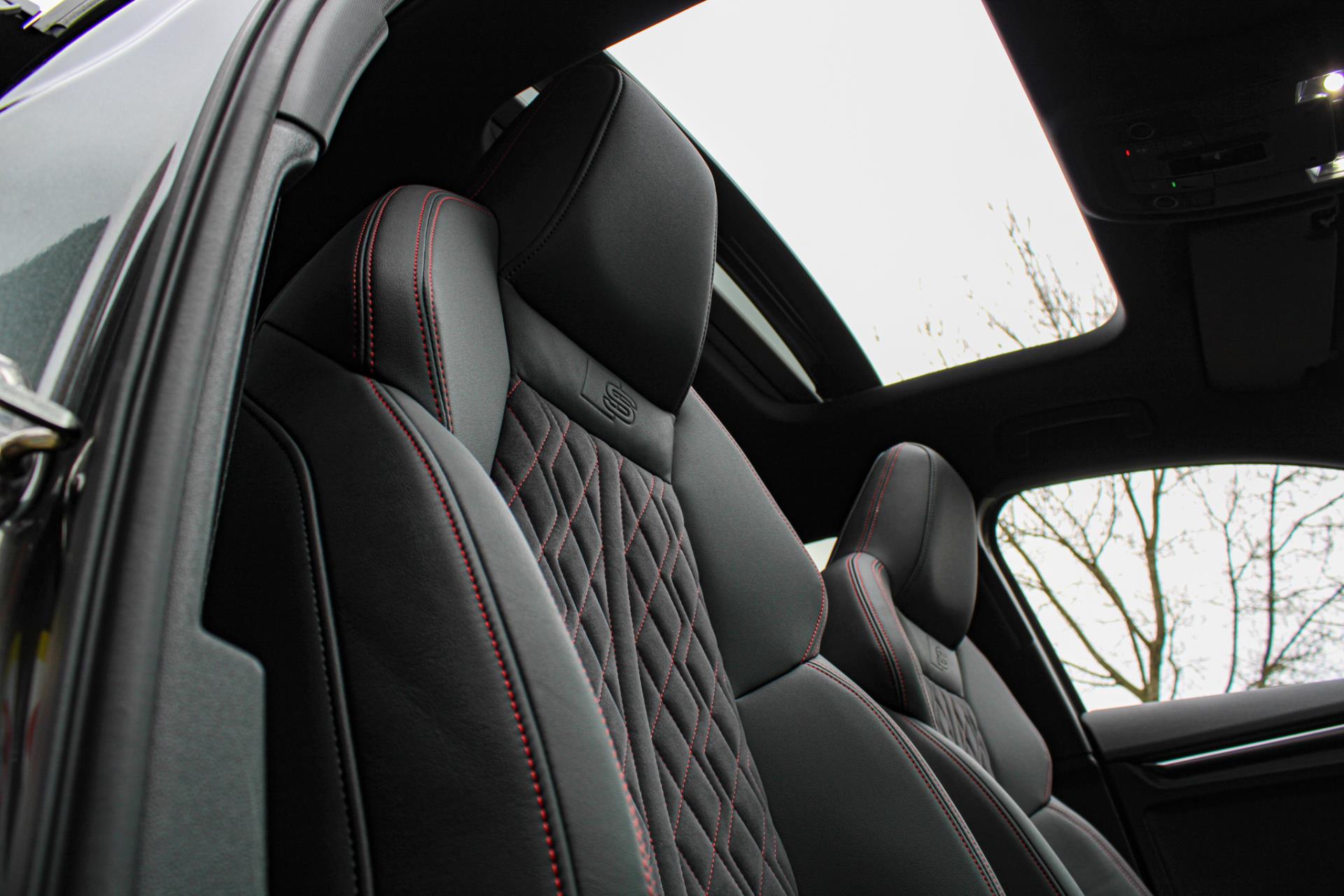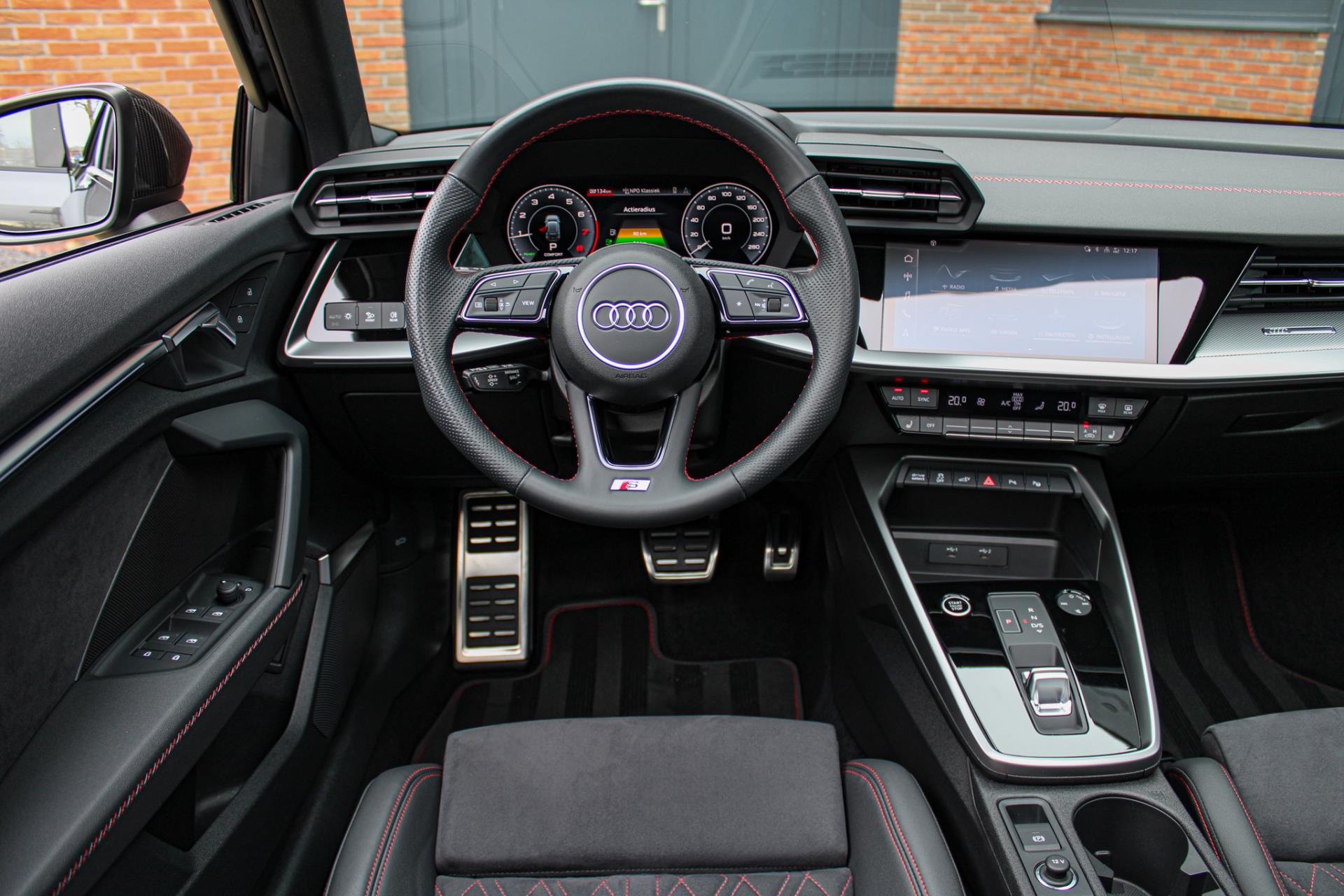 Zeer compleet samengesteld, zo mooi zien we ze zelden! Volledig S-line: interieur, exterieur en sportonderstel. Voorzien van Bang & Olufsen audio, Apple Carplay, een achteruitrijcamera en dé sportstoelen in half leder/alcantara en compleet afgewerkt met diamond stiksel in Audi Sport rood. Dit stiksel zien we terug in het dashboard, het geperforeerde sportstuur, de matten en in de deuren. UNIEK! Een A3 in zo'n gave uitvoering zien we zelden..