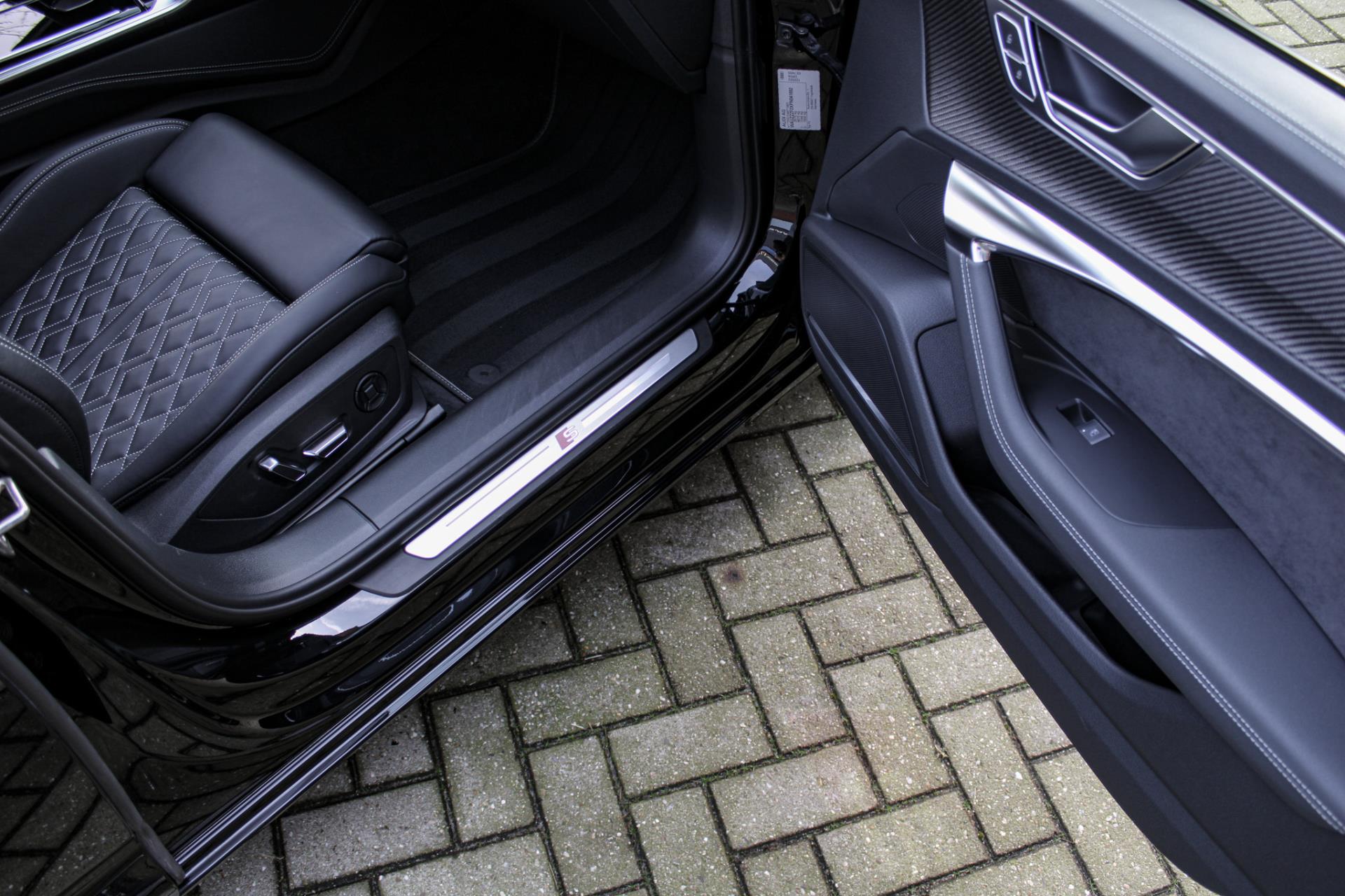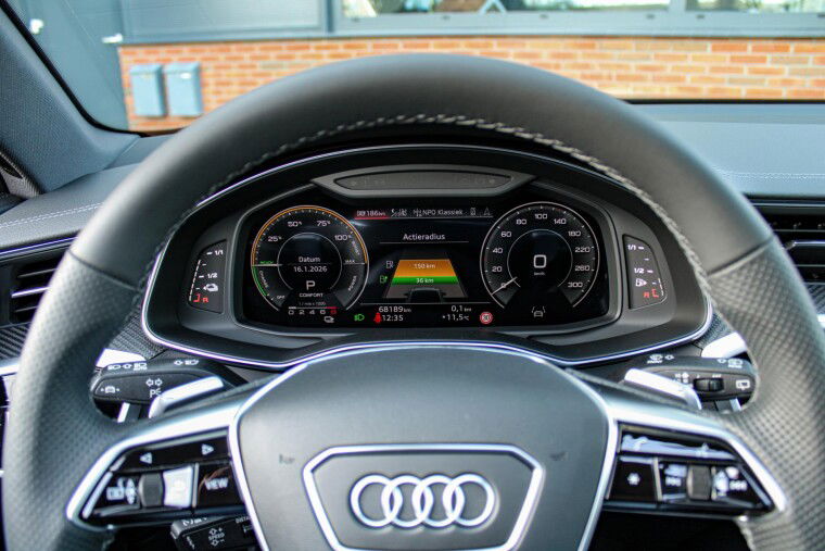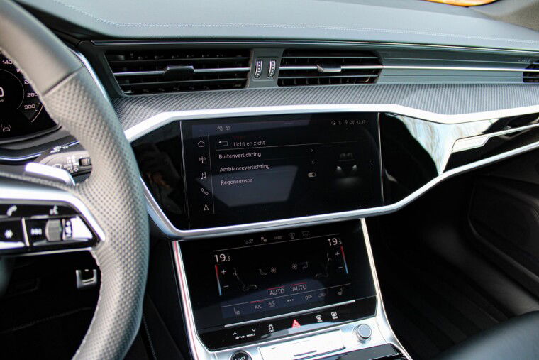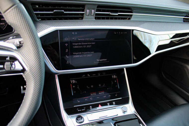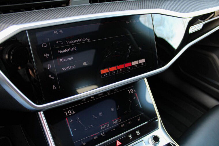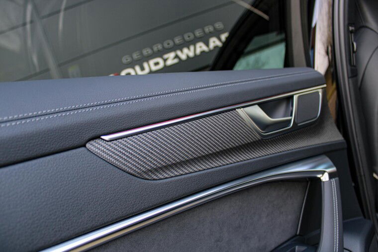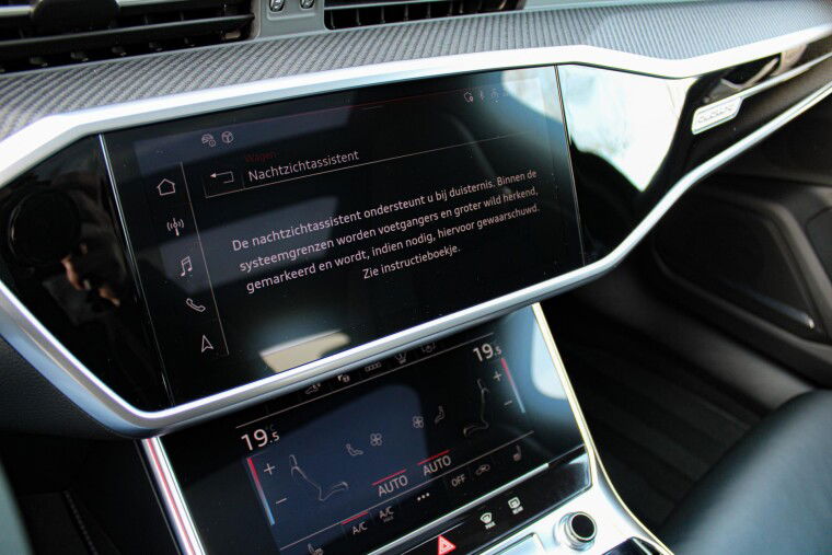 Deze A6 is rijk uitgerust met onder meer nachtzichtassistent, S6 diffuser, de valcona lederen RS-stoelen met contrasterend stiksel, geheugenfunctie en stoelverwarming, een glazen panoramadak met schuif-/kantelfunctie, verwarmd stuurwiel, rondomcamera, Bang & Olufsen Premium Sound System, 30-kleuren ambianceverlichting, keyless entry, standkachel, stoelverwarming achter, carbon interieurlijsten, matrix-led, adaptieve cruise control, lane assist, lederen dashboard, head-up display en een zwenkbare trekhaak.