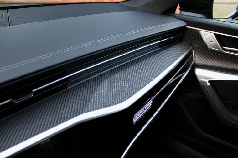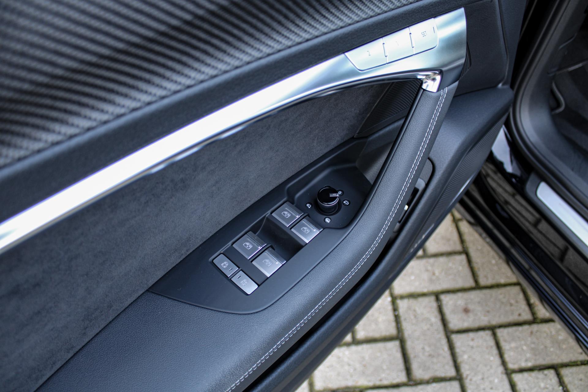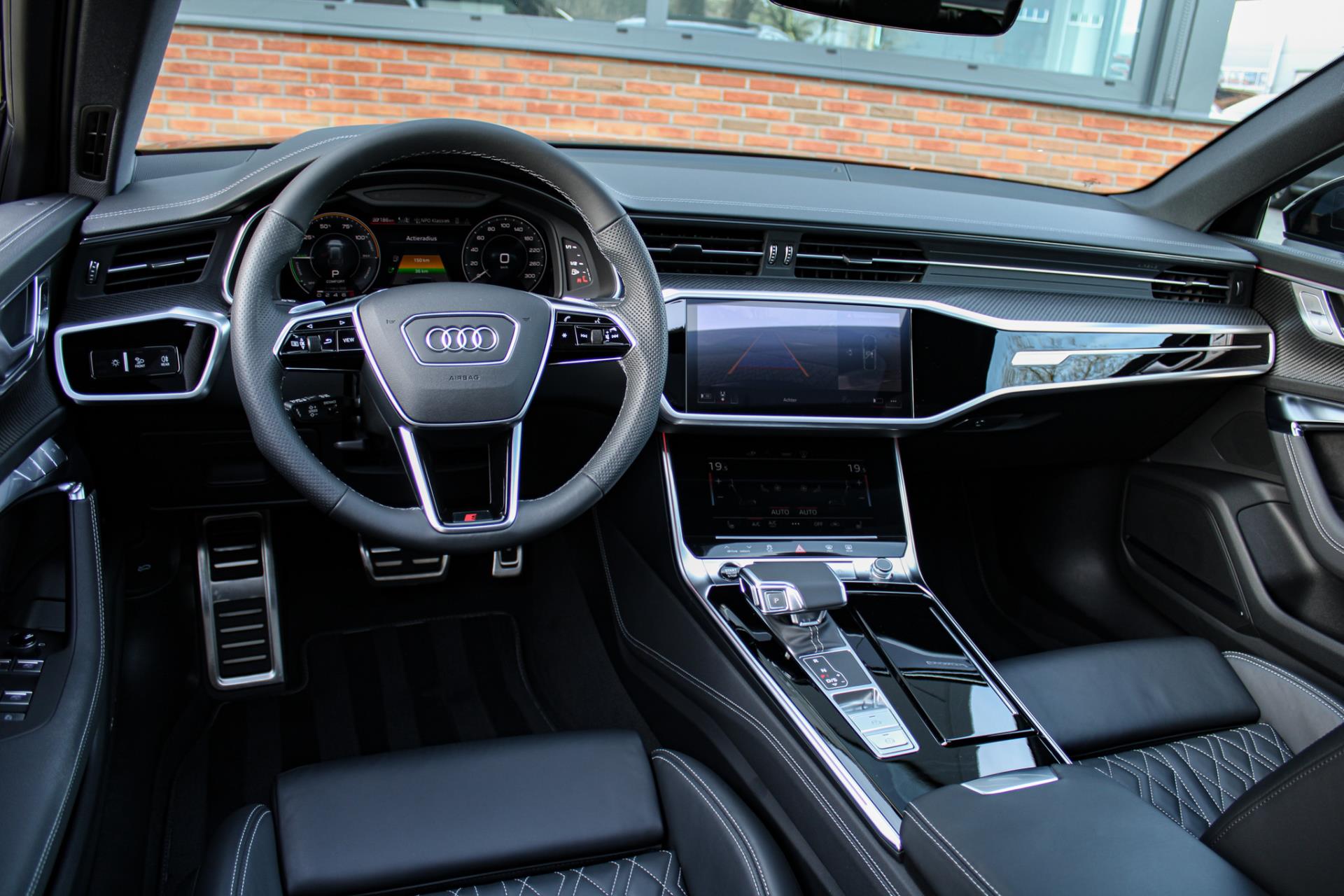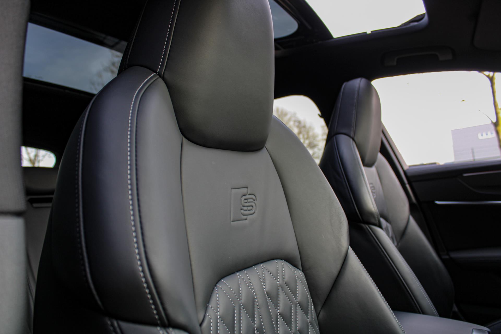 Deze A6 is rijk uitgerust met onder meer nachtzichtassistent, S6 diffuser, de valcona lederen RS-stoelen met contrasterend stiksel, geheugenfunctie en stoelverwarming, een glazen panoramadak met schuif-/kantelfunctie, verwarmd stuurwiel, rondomcamera, Bang & Olufsen Premium Sound System, 30-kleuren ambianceverlichting, keyless entry, standkachel, stoelverwarming achter, carbon interieurlijsten, matrix-led, adaptieve cruise control, lane assist, lederen dashboard, head-up display en een zwenkbare trekhaak.