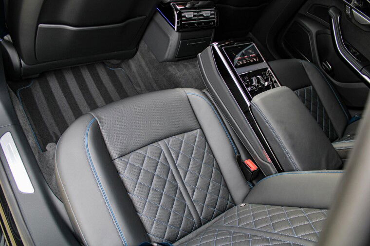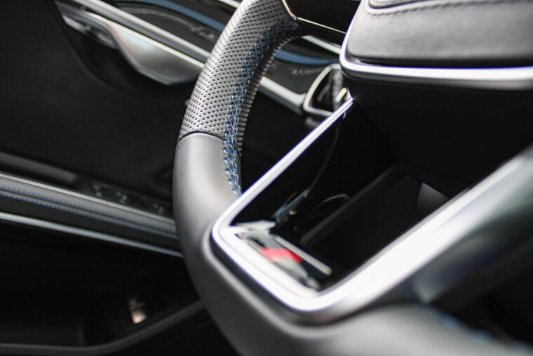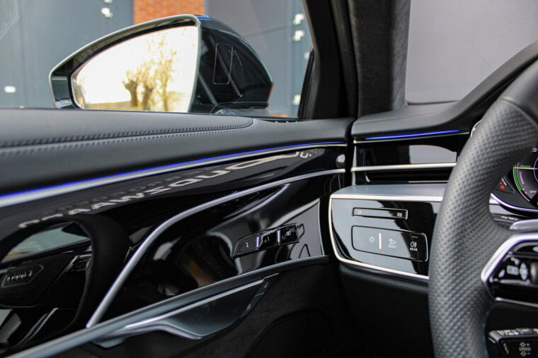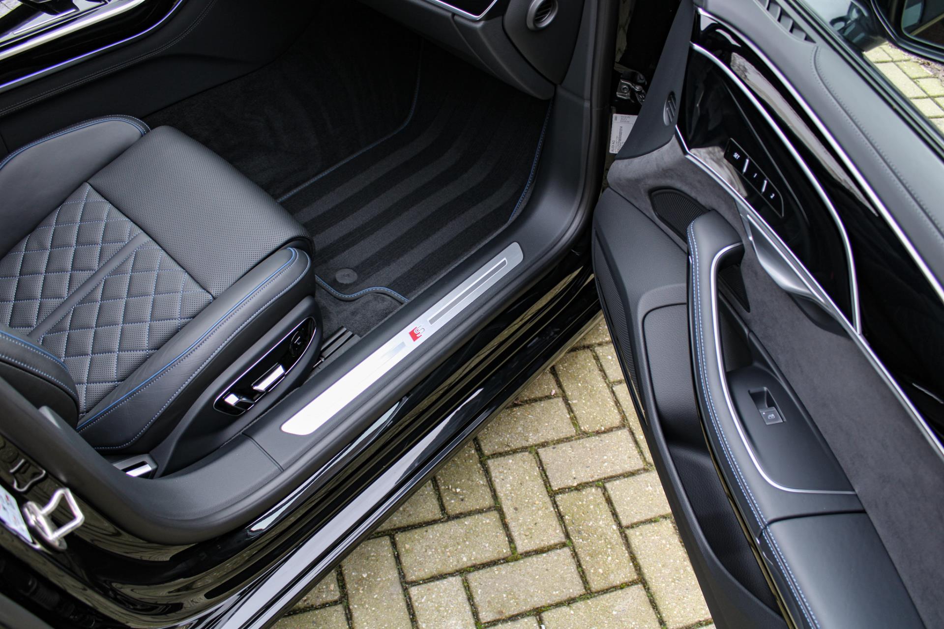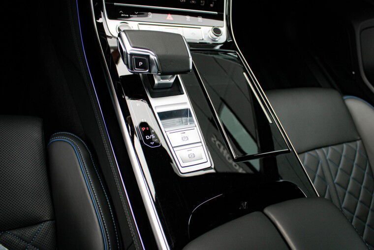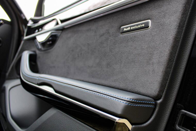 Met trots bieden we u aan, deze smaakvol geconfigureerde 2022 Audi A8 60 TFSIe 61.100KM met exclusive interieur. Gekozen is voor het Audi Exclusive designpakket zwart-oceaanblauw: zwart nappa leder met ruitpatroon en contrasterende stiksels in oceaanblauw.