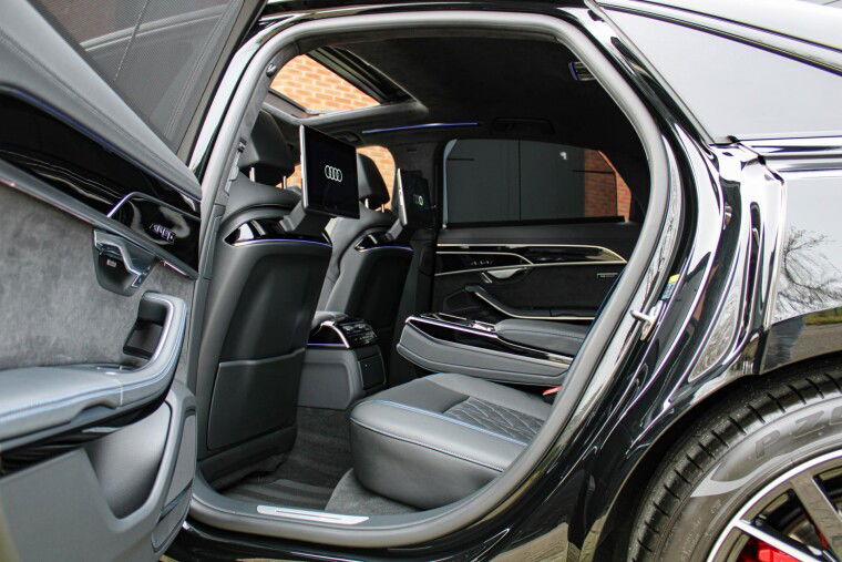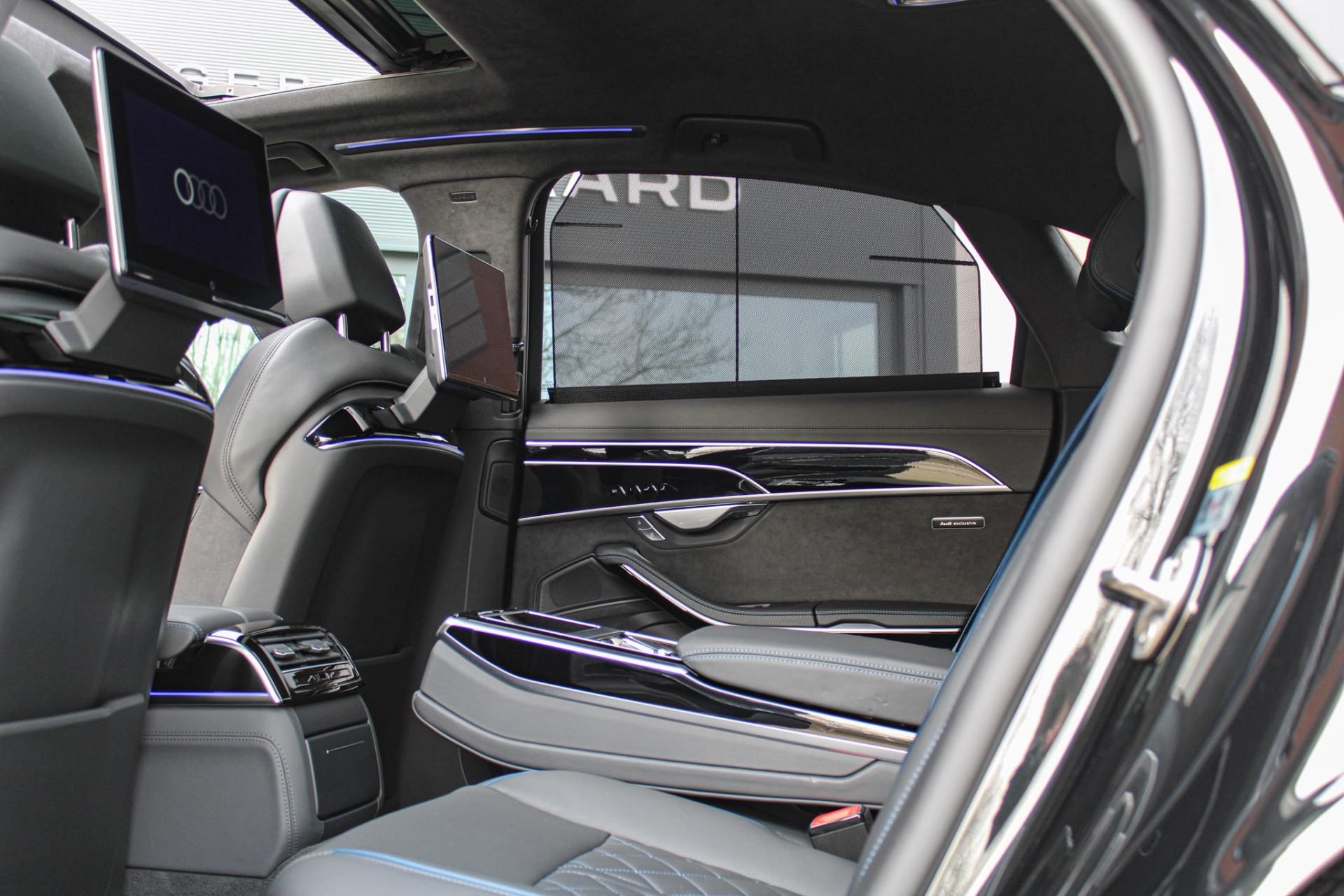 Smaakvol geconfigureerde Audi A8 60 TFSIe, UNIEK met het Audi Exclusive designpakket! Zeer compleet met 4 wielbesturing, softclose, alcantara hemel, massagezetels, enz.